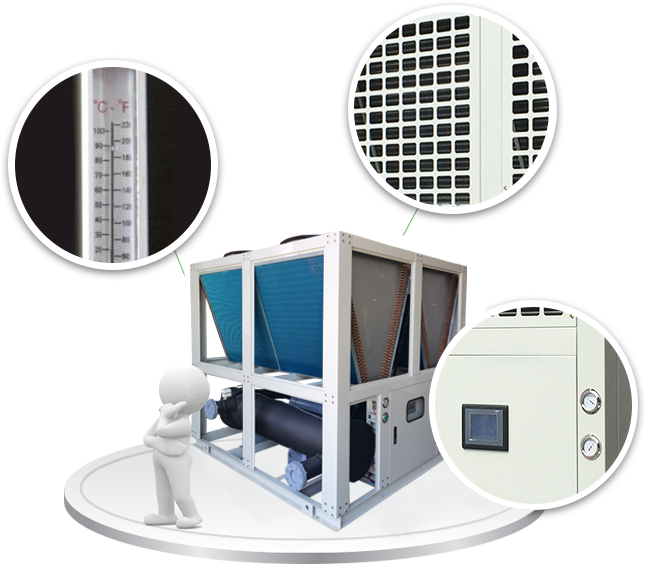 歐科隆牌風冷式冷水機之制冷心臟采用全密封低噪音,振動小,高效能省電進口名牌壓縮機,電器控制全部采用進口名牌原件,熱交換器采用殼管式冷凝器,換熱效能高,便于清洗保養。